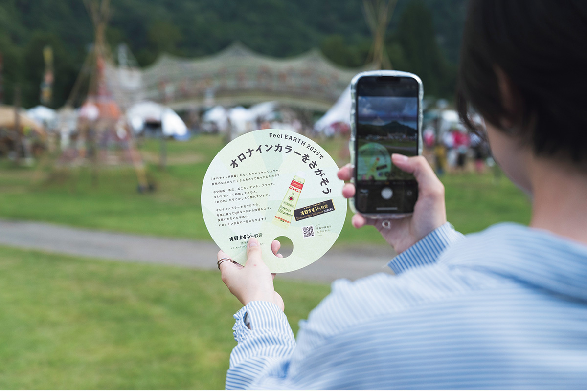 初出展。黄緑色の“オロナインカラー” を自然のなかで探すゲームや、キーホルダーを作る家族向けワークショップを開催。