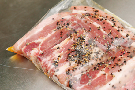1. 豚肉を5cm角程度に切り、塩・コショウを振り保存袋に入れる。