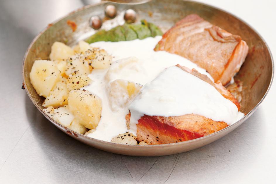 4. サーモンにお好みでディルや1.のベシャメルソースを添える。