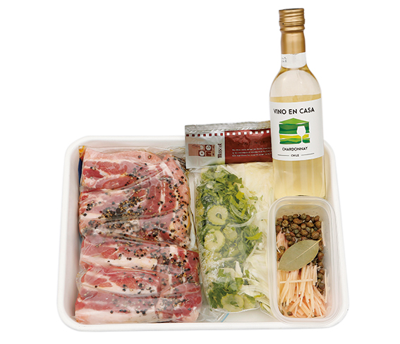 1. 豚肉を5cm角程度に切り、塩・コショウを振り保存袋に入れる。