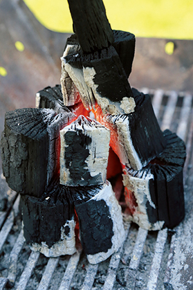 材料が整ってから炭に火を熾していたのでは、大きな時間のロス。炭への着火は調理スペースが整った段階で一番最初に済ませておきましょう。