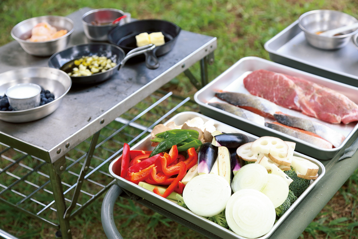 使い慣れた自宅のキッチンである程度の下ごしらえをしておけば、現地の作業時間はかなり短縮されます。おもな作業は食材のカットや肉の漬け込み、合わせ調味料作りなど。おのずと洗い物の回数もそれだけ減り、撤収作業もスムーズに行なうことができます。