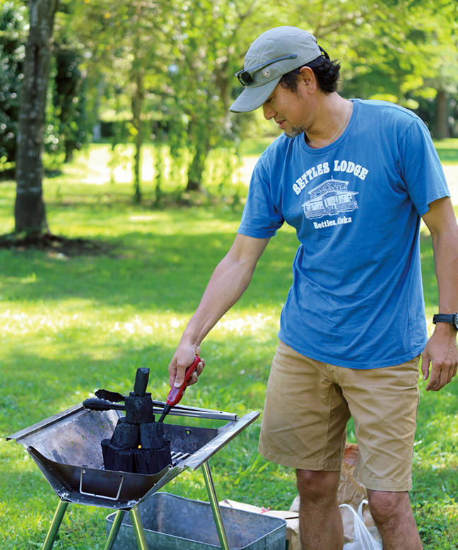 「炭を積み上げるなど、遊び感覚で火が熾せるので、お母さんが下ごしらえをしている間にお父さんとお子さんが担当してもよいですね」