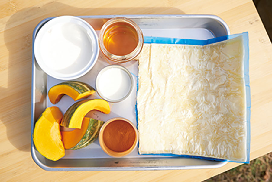 卓上グリルはデザートとも相性◎。カボチャとチーズのやさしい味の簡単ミルフィーユ。