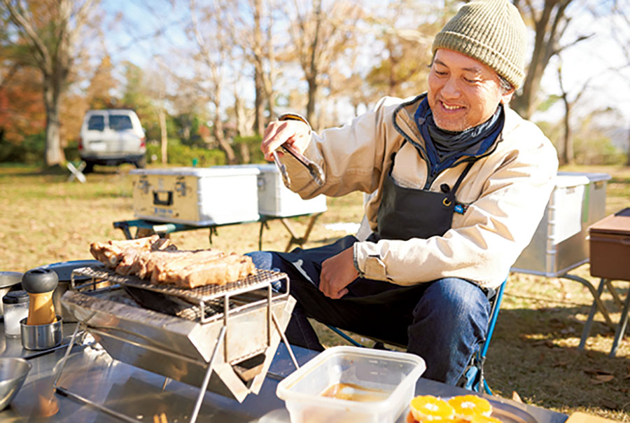 身を寄せ合ってグリルを囲みおいしい炭火料理でしっぽりと語らう。仲間とこじんまり楽しむ冬の野外飲み会には小雀さんのちょっとした役立つアイデアがありました。