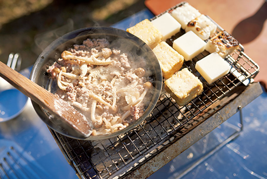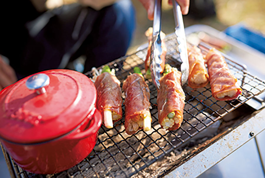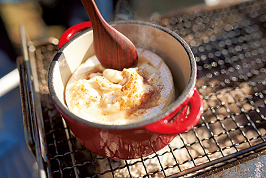 目の前で食材が焼き上がる過程は“ライブ感”も強く、それだけで場も盛り上がりますよね。そして焼き立てに箸をのばしアツアツをほお張る。これぞ寒い季節のキャンプで楽しみたいスタイル。おしゃべりしながら作って飲める、簡単でおいしいレシピを考えてみました」