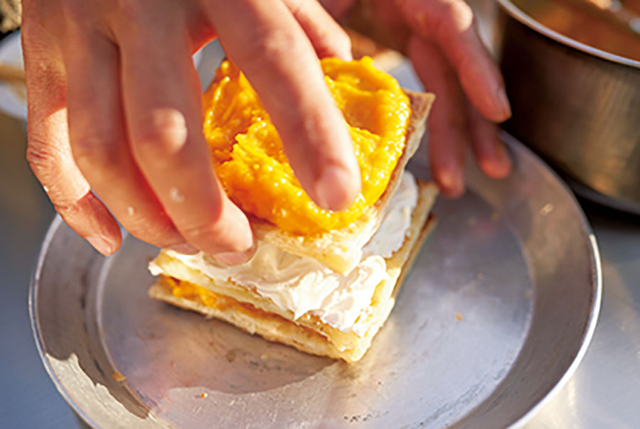 交互にマスカルポーネとペーストを塗り、層を作りミルフィーユに。