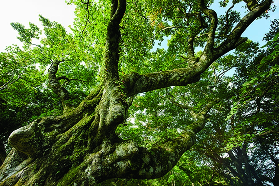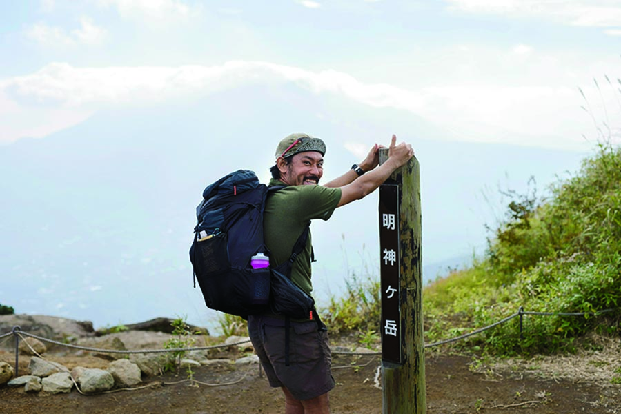2日目の朝は靄がかかって、イマイチな天気。まず目指すのは、金時山。箱根のなかでも一番登山者が多い人気のスポットだ。西側から外輪をたどって金時山に向かうコースは、ブナ林や箱根特有の笹が茂るトレイルで、アップダウンを繰り返しながらじわじわと標高を上げる。