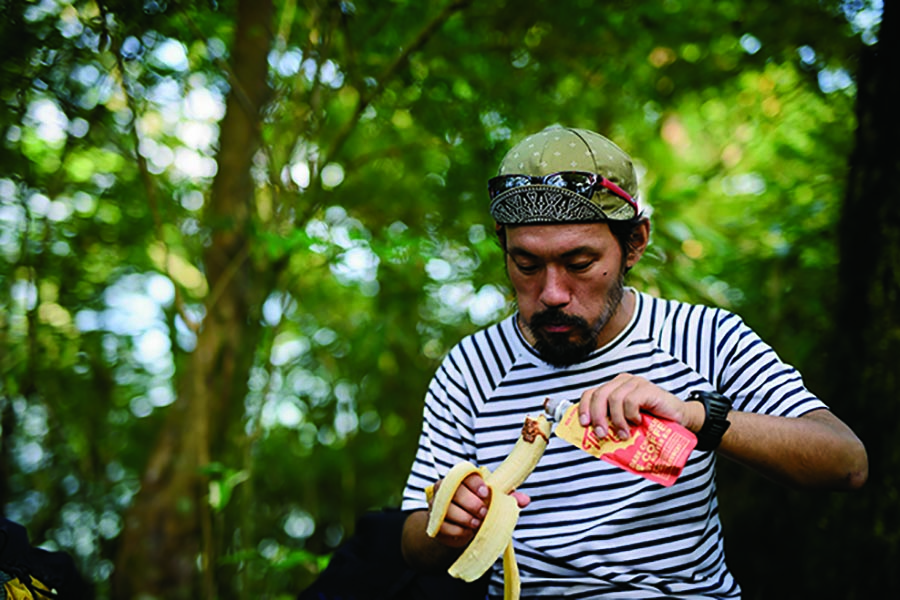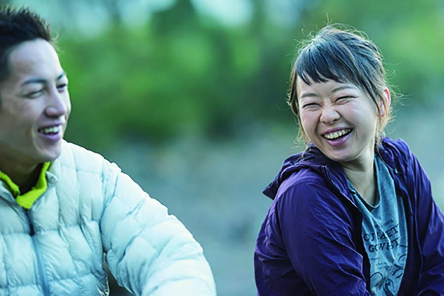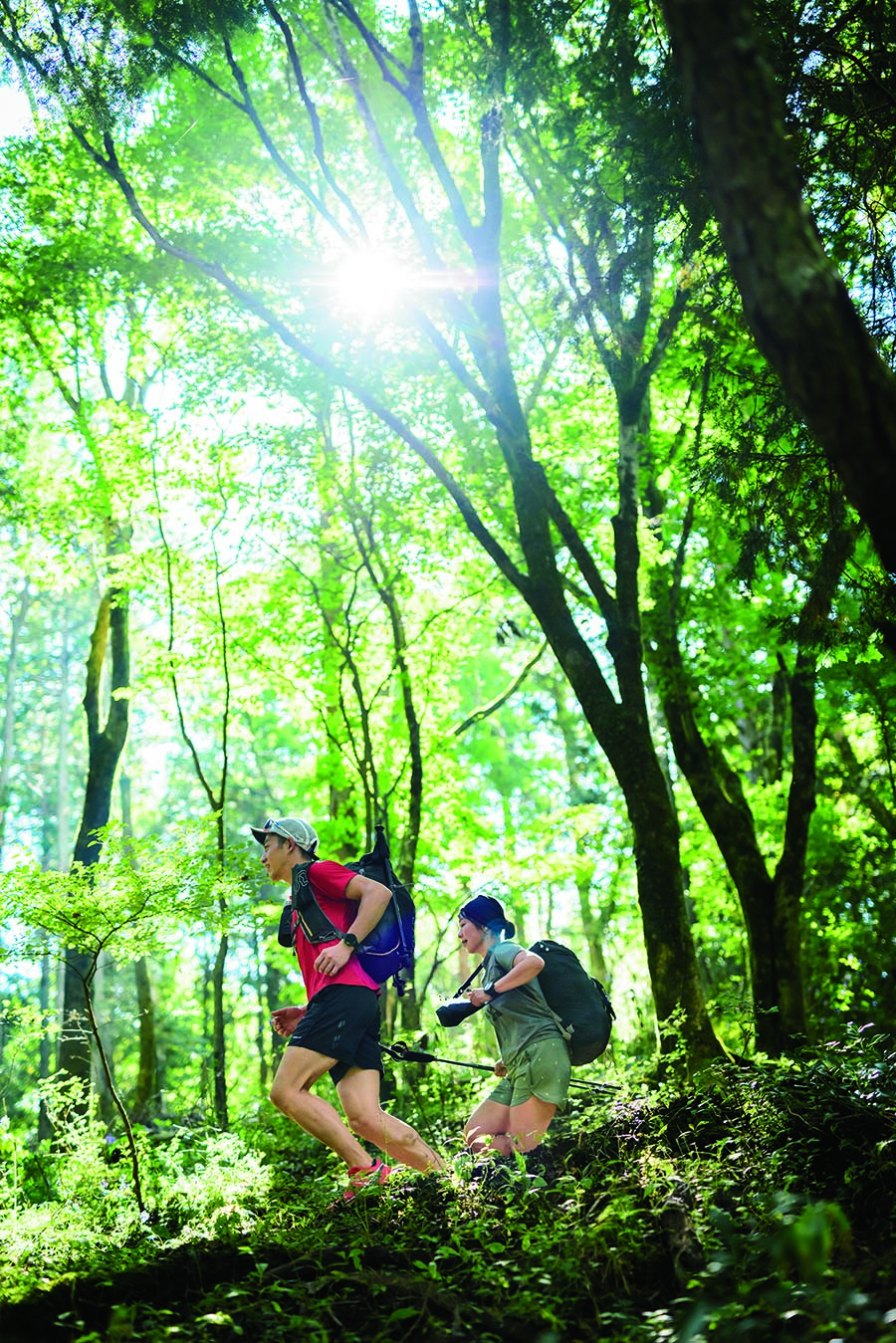 話を振る作戦だ。〝若様〞が愛称の若林さんは、トレランを始めて間もないが、すでにレースで上位に食い込む駿足の持ち主だ。若さ溢れる爽やかな笑顔は、〝様〞で呼びたくなるのも納得だ。水越さんはレースフリークで、数々のロングレースに繰り出しては走破している。「う〜ん、水越さんは、ワル……ワルサワさんで!」