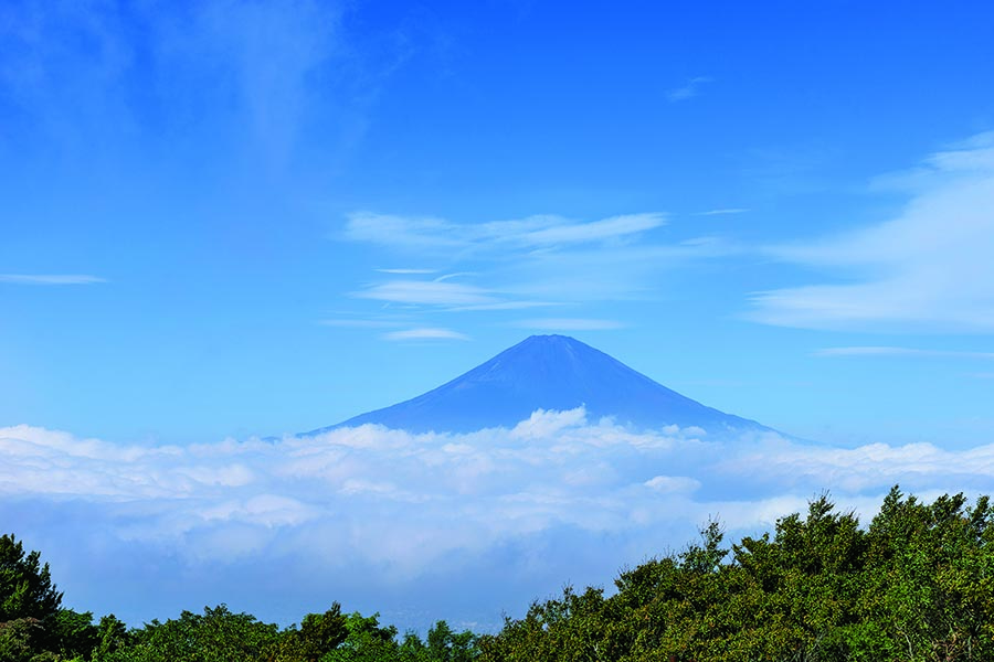 「あれ? もしかして?」「きたぁー! 山頂だ!」。午前11時、金時山に到着した途端にたちまち雲が消え、青空と雲海に浮かぶ富士山がどーんと姿を現した。さっきまでの鬱蒼とした雰囲気からのギャップに私達はいっそう興奮した。