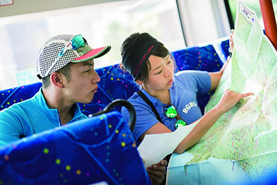 話を振る作戦だ。〝若様〞が愛称の若林さんは、トレランを始めて間もないが、すでにレースで上位に食い込む駿足の持ち主だ。若さ溢れる爽やかな笑顔は、〝様〞で呼びたくなるのも納得だ。水越さんはレースフリークで、数々のロングレースに繰り出しては走破している。「う〜ん、水越さんは、ワル……ワルサワさんで!」