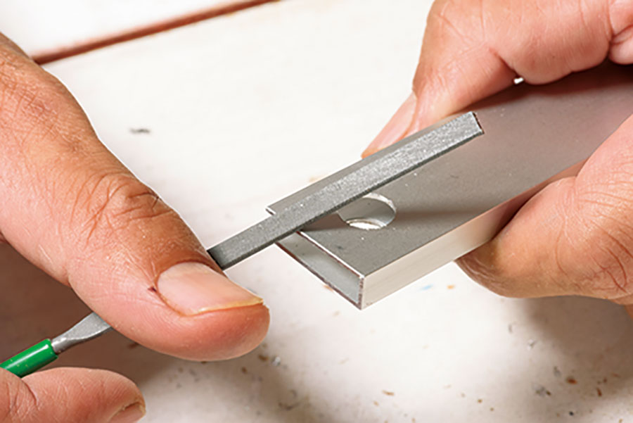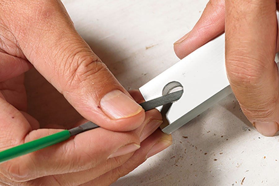 断面を鉄工ヤスリでならす。端の断面は平らなヤスリを使うときれいになる。手で触りながら滑らかになるまで続ける。
