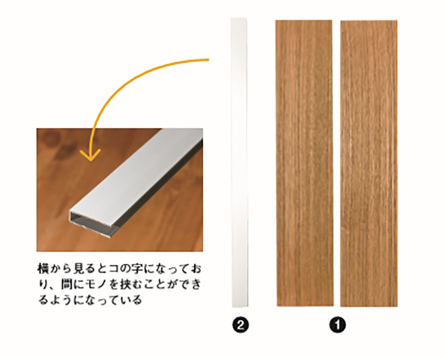 組み立てる際は木板をアルミパーツに挟む。抜けてしまうと上に載せたものが倒れるので、しっかりと木板を差し込んでおく。