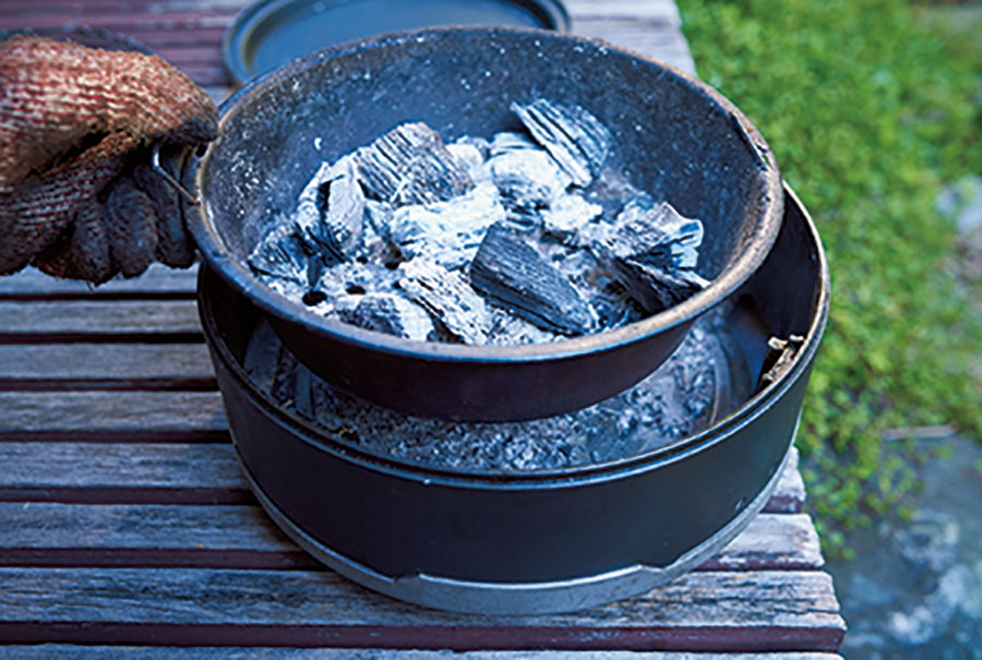 焼け落ちた食材を取り除けば、使用後はフタを閉じるだけで火消し完了。炭は再利用できる。