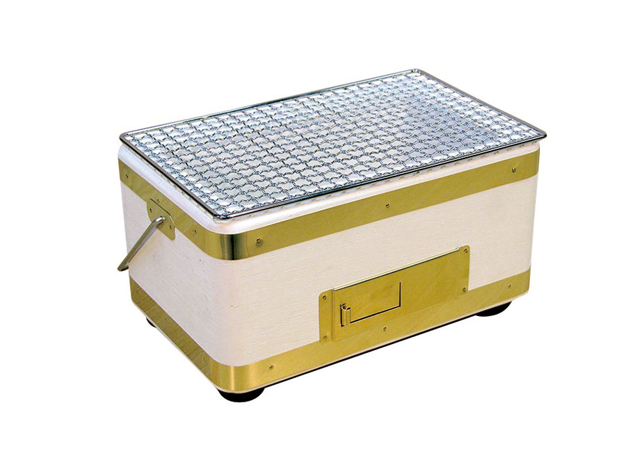 まさに“ちびちび”やりたくなるお酒好きのための角型七輪。卓上用で背が低く、網面は約27×17㎝と、ししゃもやめざしが焼きやすい手ごろサイズ。珪藻土ブロックから削り出した頑丈さも魅力だ。重さ約3㎏。