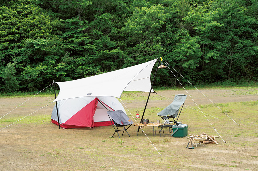 :ふたりきりの場合はタープの下にテントを張る〝ミニマルスタイル〟がいいですね。