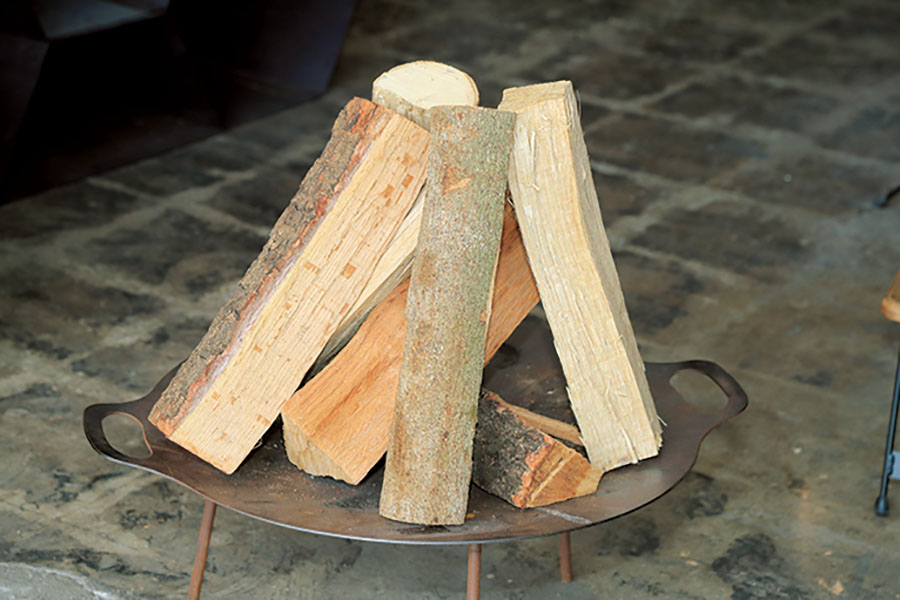 薪は焚き火の主役。焚き付けには針葉樹(杉など)を使い、メインには広葉樹を使おう。薪の特性を見極めることもポイント。