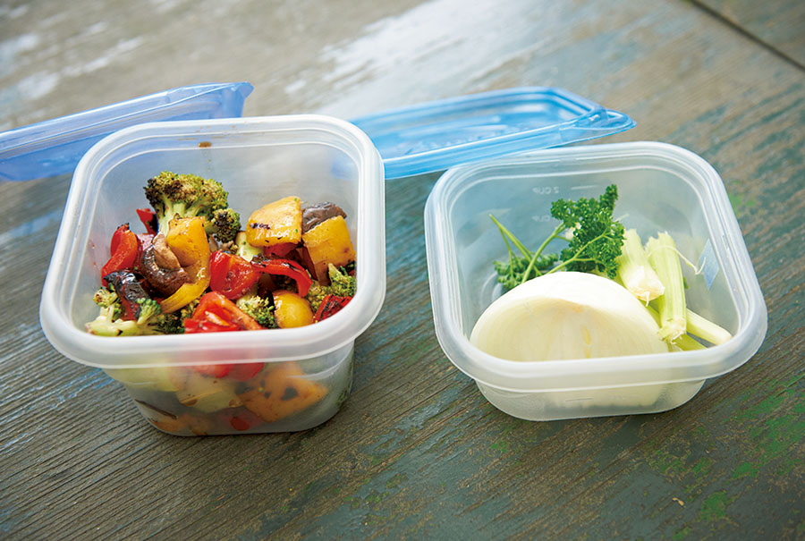 使い切らなかった食材や食べ残してしまった料理は、ジップロックコンテナといった密閉ケースに入れて持ち帰るのがベスト。深さと幅の違う数種類を揃えておけば、たいていの食品はきれいに収まる。事前準備ではレシピや料理のことばかりに気を取られがちだが、撤収までイメージしておけば帰り支度がスピーディになる。