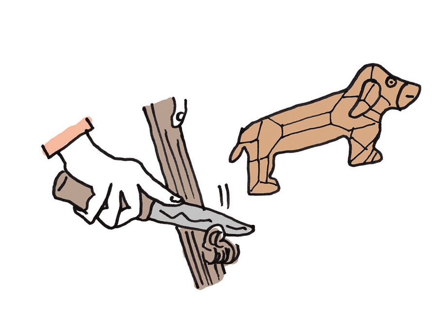 慣れてきたら木の枝で串焼き用の串や箸、そしてさらにはなにかを削り出して動物などを作ってもいい。親子ともに静かな時間が流れ、いっしょに遊んだ思い出になる不思議な時間がナイフにはあるのだ。