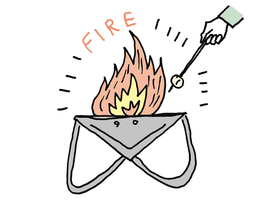 焼くものはなんでもOK だが、マシュマロやソーセージなど、すぐに火がとおり簡単に食べられるものがおすすめ。