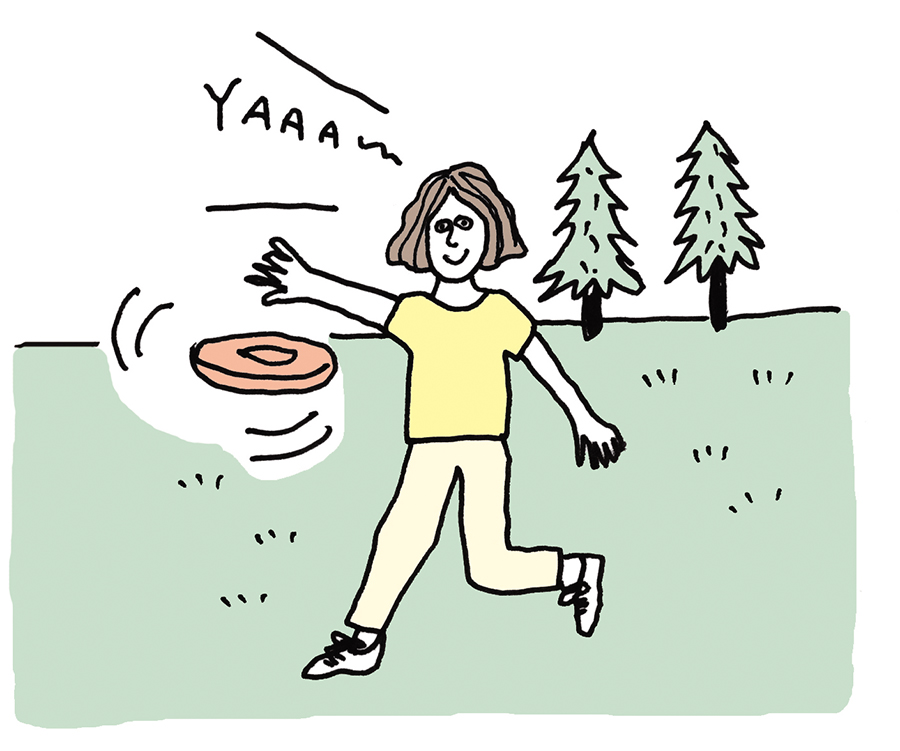 広くて開放感がある場所だからこそ楽しめる遊びの代表選手がフリスビー。遠くに投げる、キャッチボール風、ゴルフ風など、さまざまな遊びに展開できるのも魅力のひとつ。
