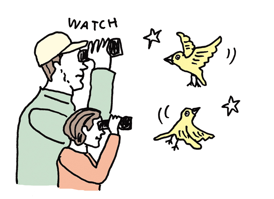 使い方は簡単。まずは鳴き声が聞こえる方向を頼りに自分の目で野鳥を見つけ、そのまま顔と目を動かさずにそっと双眼鏡を目の前に持ってくるだけだ。