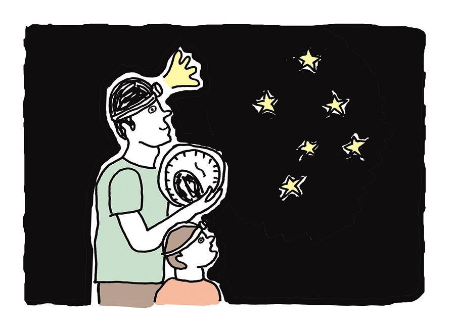 「キャンプでの夜更かしにおすすめなのが星空観察。いま見えている星は何年も前に光った光が届いているという不思議、そして星が形作る星座の世界を楽しんでみてはいかがでしょうか? ヘッドランプの灯りで星座早見盤&コンパスとにらめっこしながら、どちらが先に目的の星座を見つけられるかを競争するのも盛り上がります」。