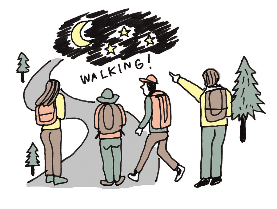 “ちょっとだけ夜更かし”のもうひとつおすすめは夜のハイキング。ハイキングといっても遠くまで行く必要なんてなく、真っ暗なご近所を散歩するだけで十分ドキドキする遊びになる。
