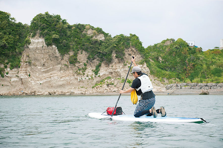 案内をお願いしたのはコアアウトフィッターズ代表の山口浩也さん。山口さんは長年にわたりパドルスポーツのガイドを務め、このエリアの潮流や地形、風の吹き方を知り尽くした海遊びのエキスパートだ。