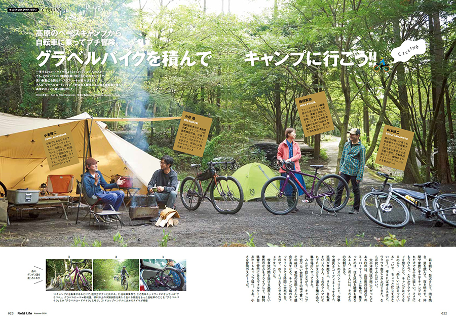 ドロップハンドルに太めのタイヤが特徴の“グラベルロードバイク”を積んで高原のキャンプ場へ。キャンプ場をベースにして、高原のオンロードと森のグラベルロードを走る、グラベルライド&キャンプ。