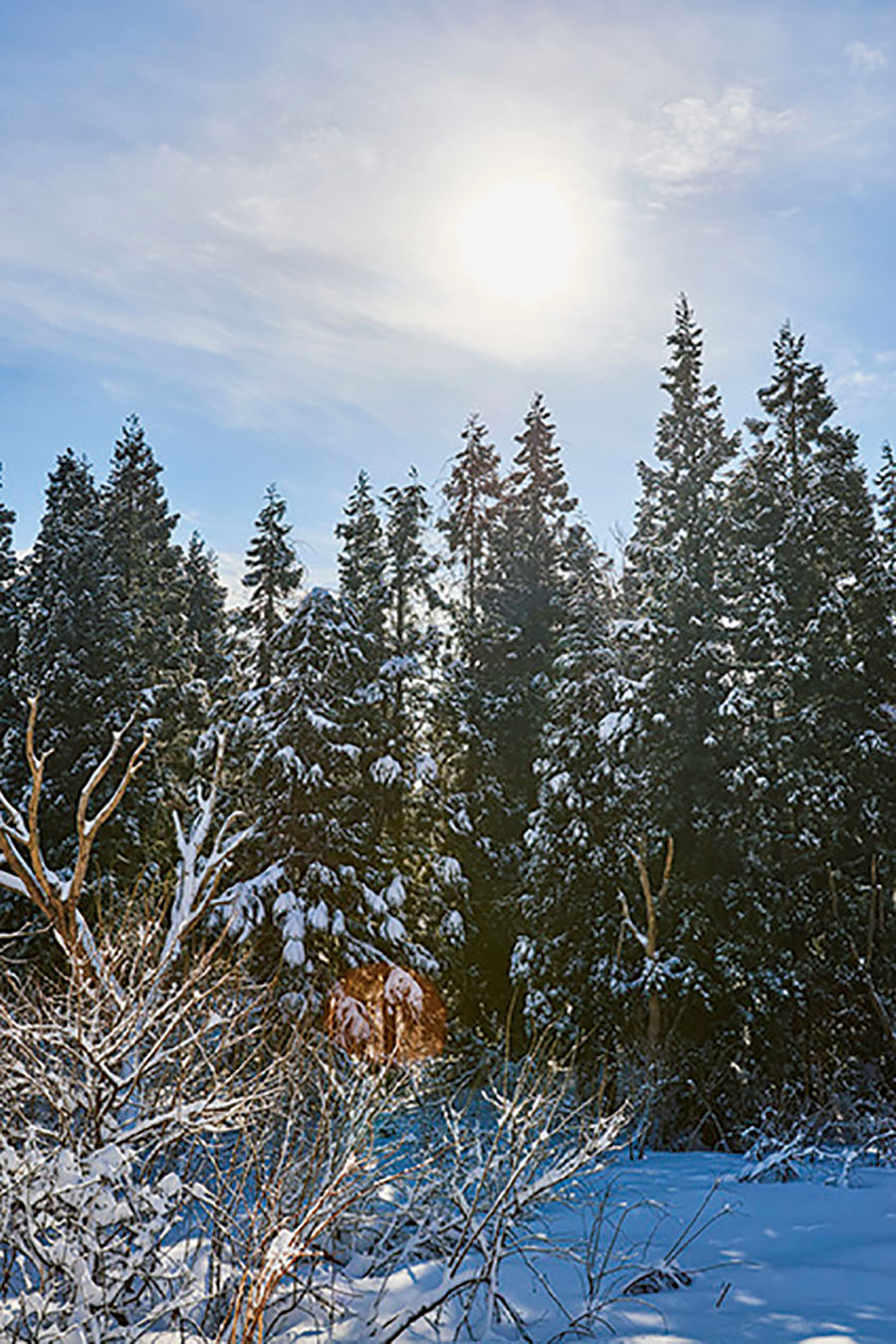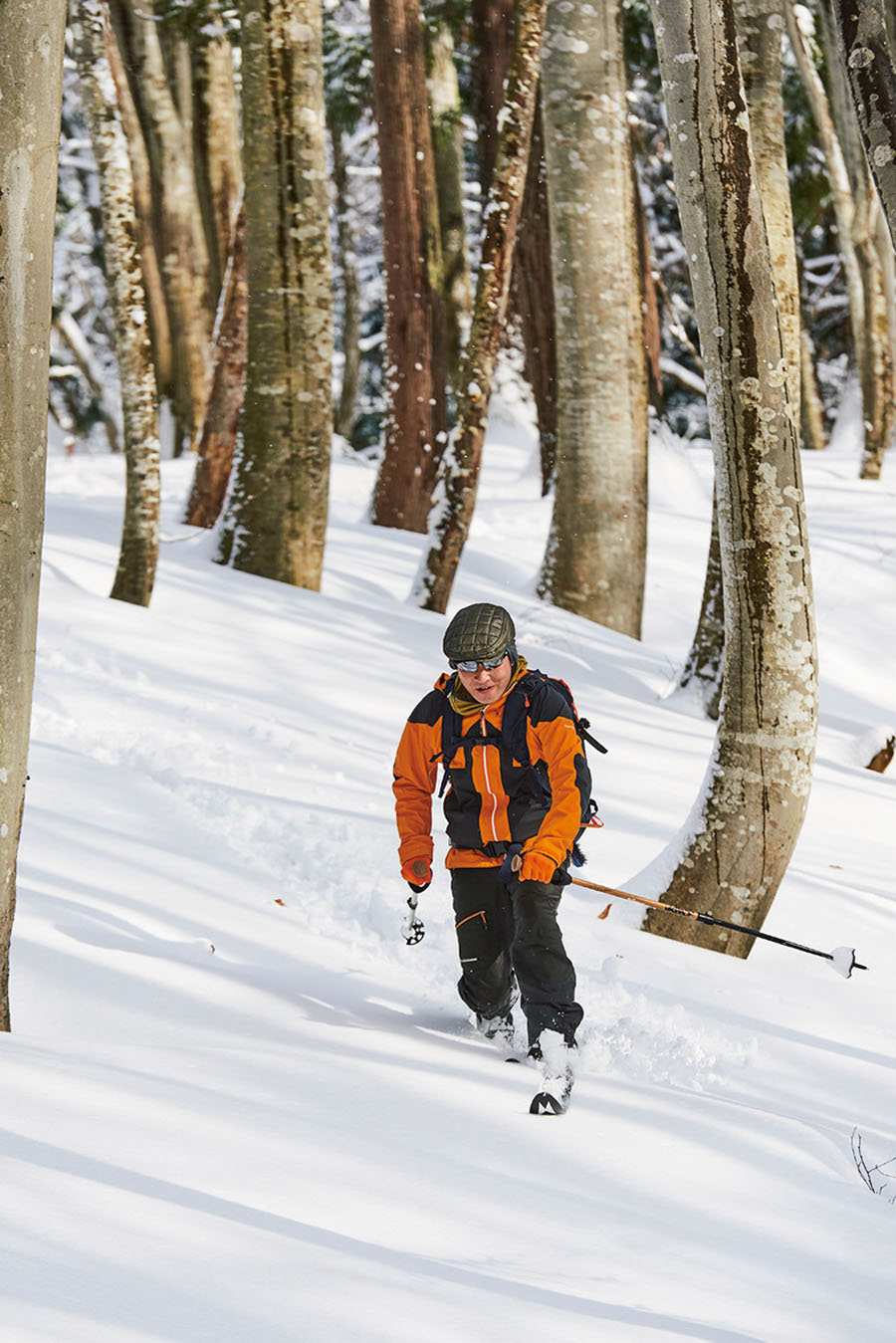 滑ることが目的のバックカントリースキーならほんの数秒で通りすぎてしまう林も、こうしてゆっくり進むと、日ごろ近くでじっくり感じることのない香りに出合える。