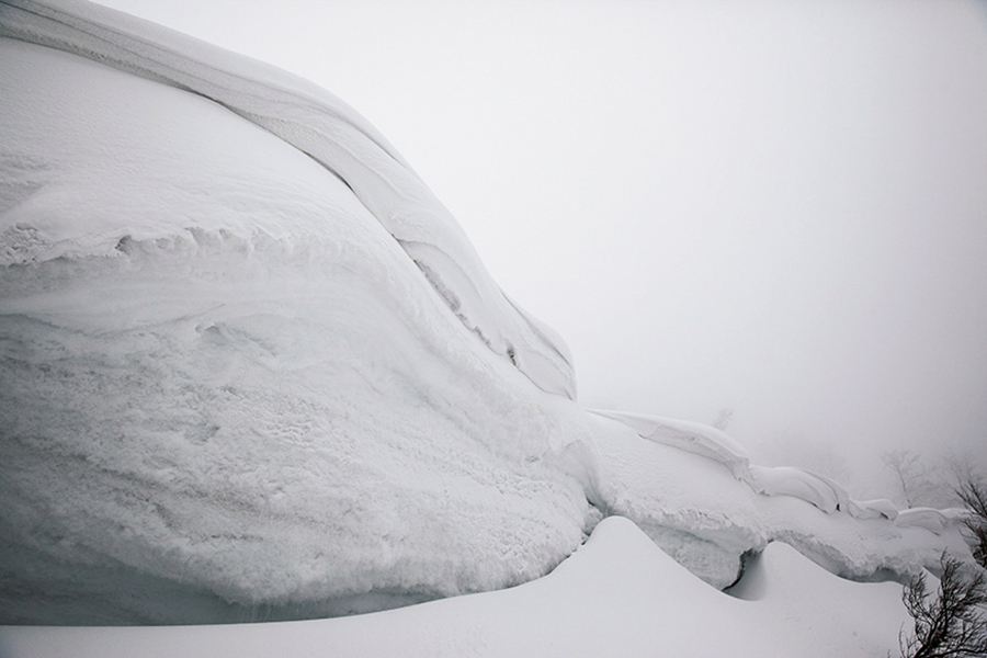 最終日も快晴で迎えたが、スキー場のインフォメーションはリフトトップで25㎝の積雪を伝えていた。しかも、リフトを下りるとふたたび真っ白なガス、雪、そして暴風。迷わず撤収を決めた。