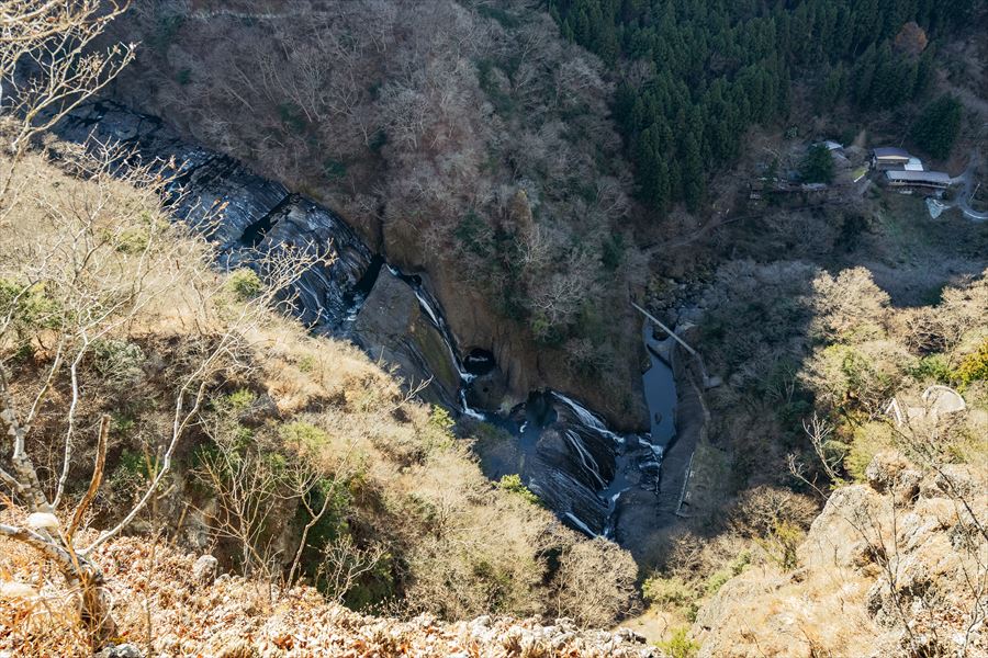 トレイルの途中、高さ120mを誇り日本三名瀑にも数えられる袋田の滝を上から望める貴重なスポットもある。
