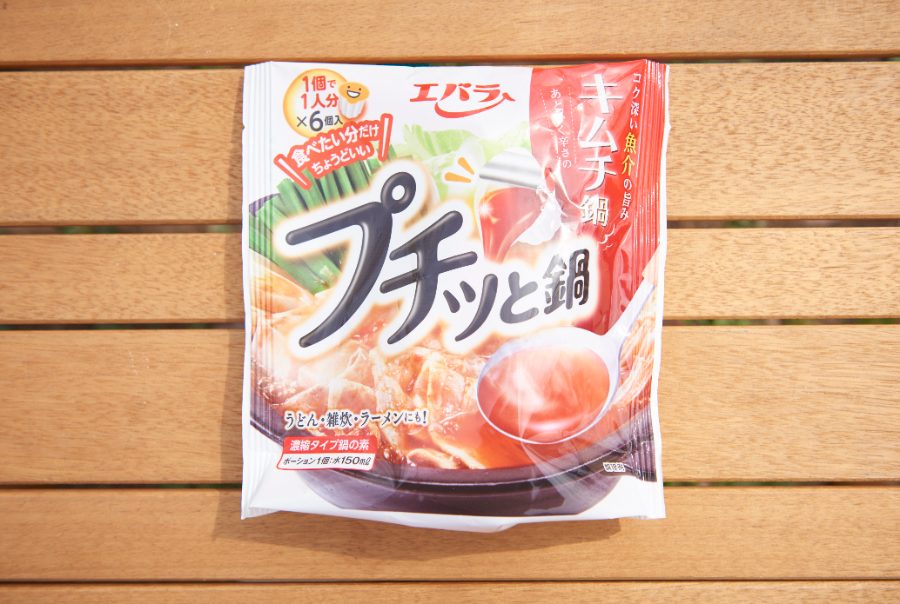 エバラ食品の「プチッと鍋」シリーズは、人数やシーンに合わせて鍋料理が手軽にできるポーションタイプの鍋の素。その「キムチ鍋」はイワシ、オキアミ、鮭、鰹節の旨みと、にんにくのコク、唐辛子の辛さを程よく効かせたコク深い味わい。