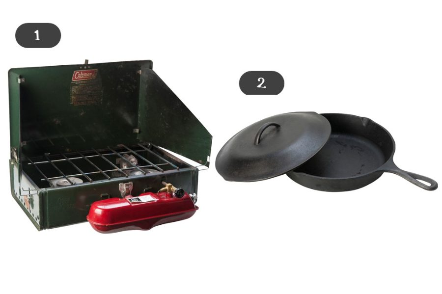 - ツーバーナー:アウトドア用のふた口ガスコンロ。家庭用のカセットコンロでもまかなえるが、寒さや風に強く火力が安定するのはこのガソリンタイプ(愛用品はコールマン/413Hパワーハウスツーバーナー)