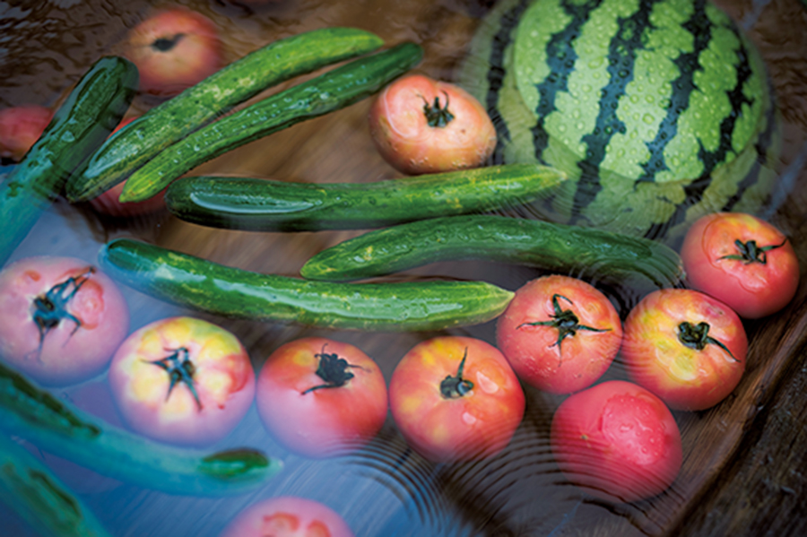 小屋の前には、汗だくのハイカーを元気づける大地の恵みが! あぁ、なんて誘惑の冷え加減。
