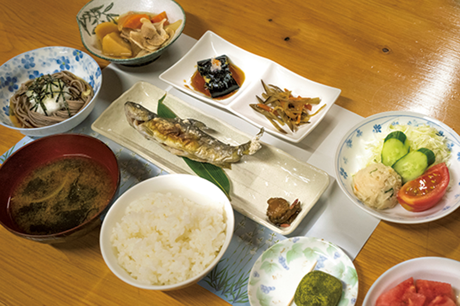 小屋のごはんは、ブナの原生林の湧水を使って調理しているそう。たらふく食べて、明日からの長時間山行に備える。