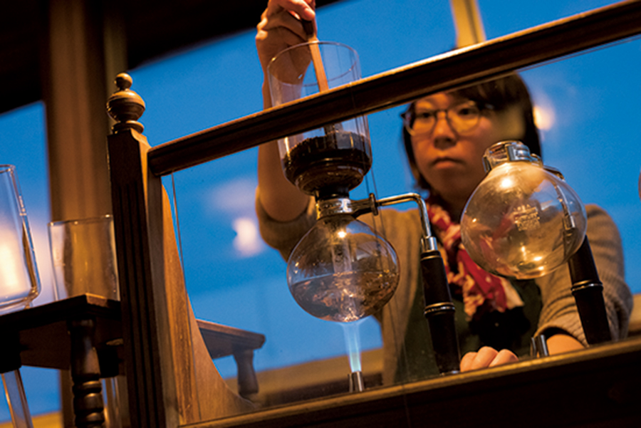 食後はサイフォンでていねいに淹れたコーヒーとケーキ。