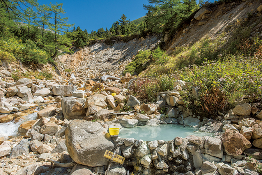 三俣山荘をスタートして約5時間。ついにオアシスを発見! 最寄りとなる折立登山口からでも約13時間歩かないとたどり着けない奥地にある。雲ノ平も遠いけど、真の“はて”はもしかしたらここかもしれない。