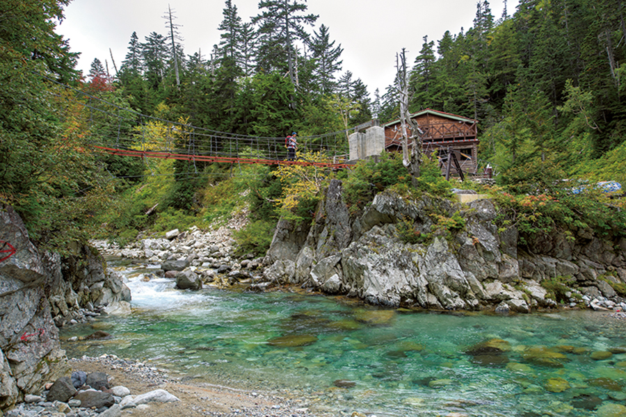 下山は、薬師沢小屋を経由して折立へ。薬師沢は知る人ぞ知る釣りのメッカで、驚くほど水が透き通っている。