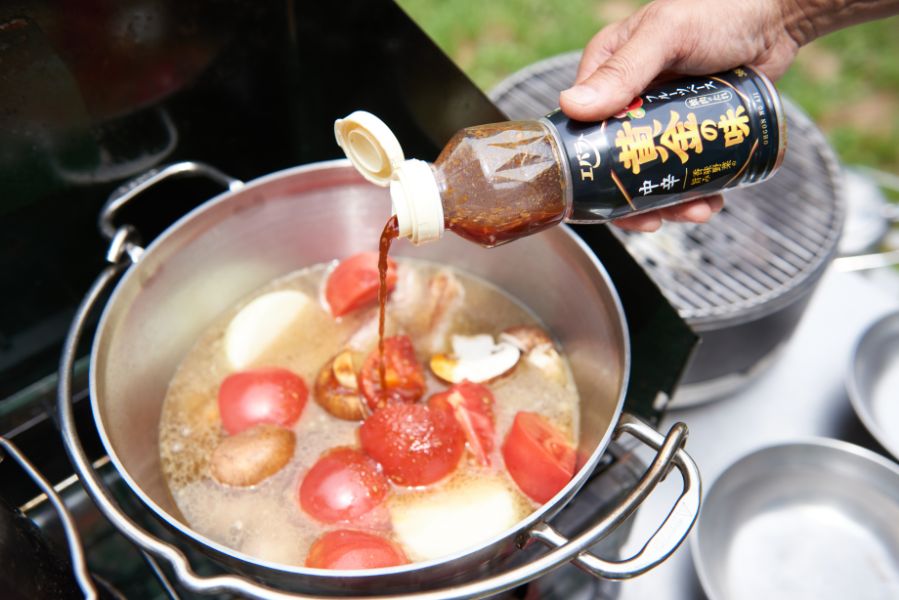 「エバラ食品」×「キャンプ料理の王様」のコラボ企画第13弾は、ダッチオーブンの圧力鍋効果を最大限活用し、ブロック肉をトロトロに柔らかく調理する簡単煮込みをご紹介!