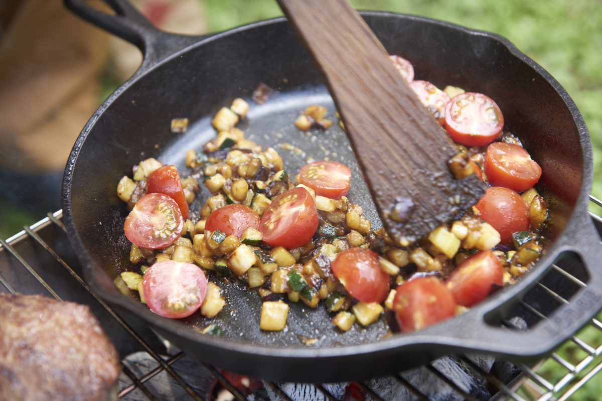 1. スキレット:鋳鉄製の極厚フライパン。ムラなくおいしく食材をふっくら仕上げる(愛用品はロッジ/スキレット10インチなど)