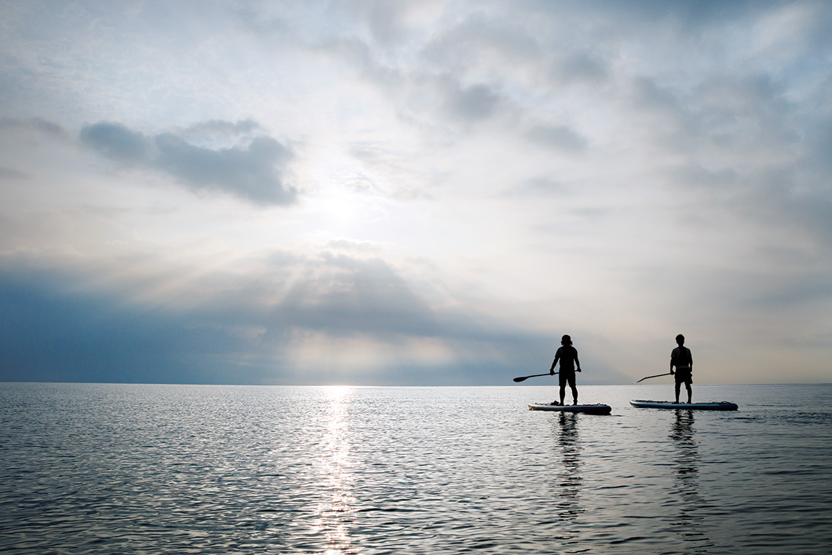 やがてまっさらな朝日が昇り、水平線の向こうから銀色の道が延びてきて、僕らのSUPと繋がった。とても美しい朝だった。