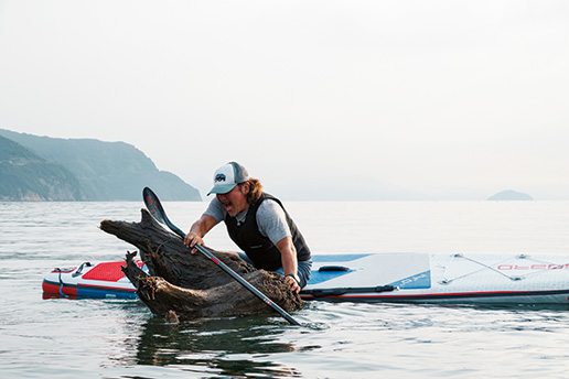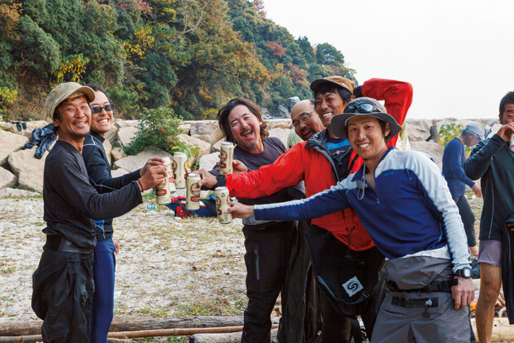 わずか2日間の川下りだったが、ダイスケはそのときの感動が忘れられず、その後も四万十川へ通うようになる。やがて自分のカヤックを手に入れ、荒海を漕いで腕を磨いた。そして13年に第11次横断隊に初参加。「もし瀬戸内海を完漕することができたら、地元の尾道でガイドになろうと決めていた」そうだ。そして横断に成功し、こうしてプロガイドになった。