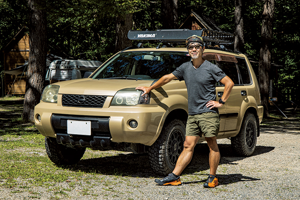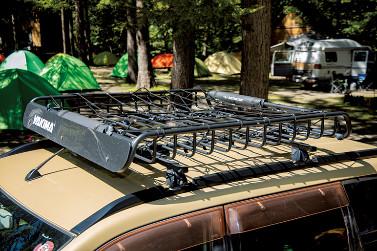 アメリカを代表するアウトドアギアブランド、ヤキマのルーフキャリアを装着。車内に積みきれない場合や長物も運べるので重宝している。専用のネットと併用。
