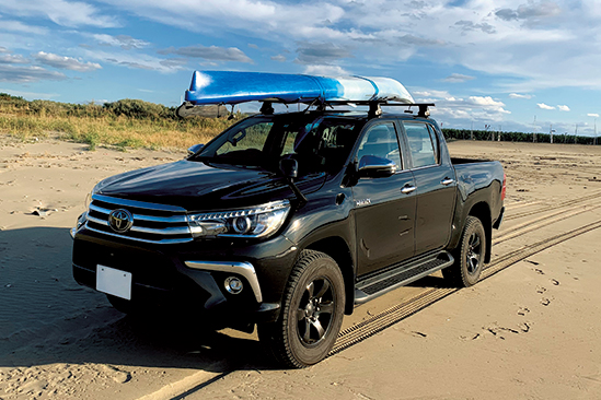 キャリアはスーリー。スキー板やサーフボード、マウンテンバイクなどは後部にラクラク積み込めるのでキャリアを使うのはカヤックなどの超長物を持ち運ぶときのみだが、なにかと頼りになる。