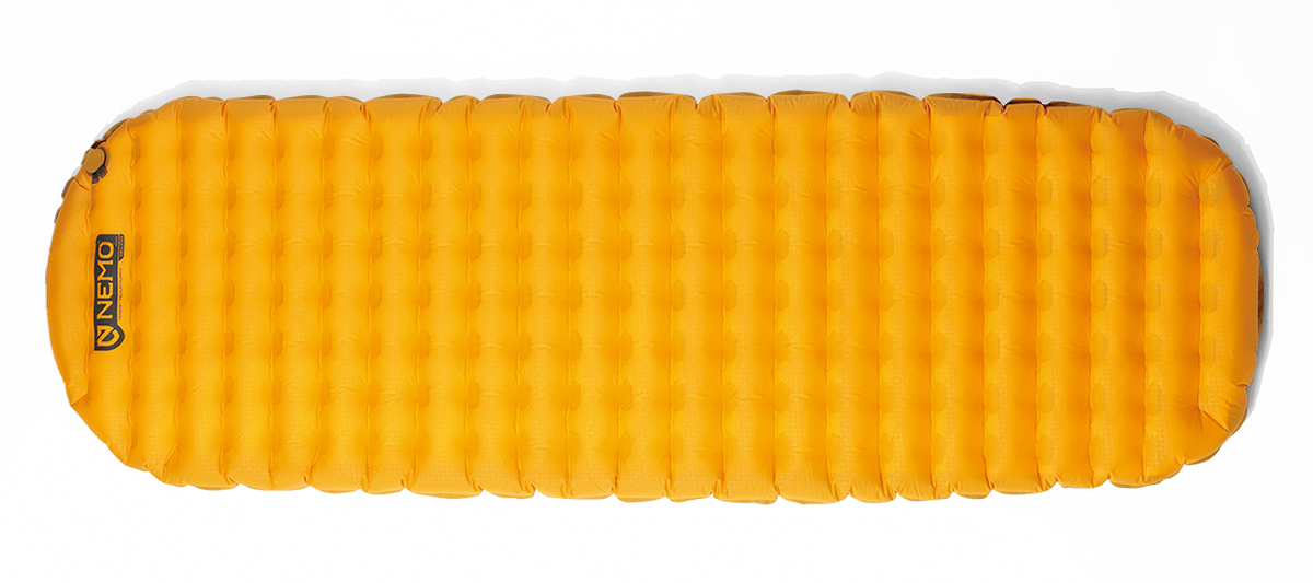 ニーモのエアマットは揺れにくくて寝心地がとても快適。断熱フィルム入りで保温性が高く、4シーズン使える。付属のポンプサックで簡単に膨らませられる。