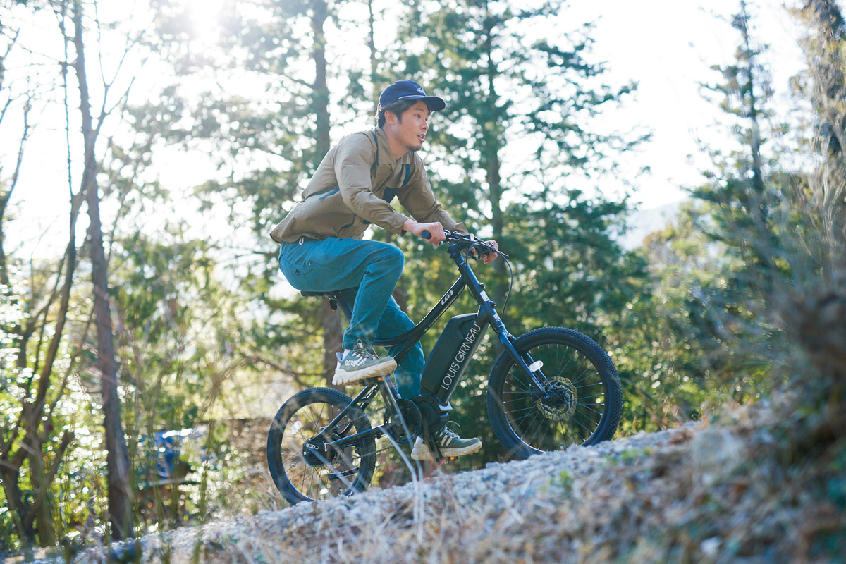 そんなさくぽんに、フィールドライフ編集部のおすすめとして今回持ち込んだのは、シマノ製の電動アシストユニット+自動変速機能の付いたミニベロ「ルイガノ・イーゼルインター5E DI2」。未舗装のキャンプ地との相性でいえばマウンテンバイクもありだけれど、小径ホイールのためコンパクトでクルマに積みやすく、スポーティすぎないミニベロは、ソロキャンプに楽しみを加えるための最初の自転車としては敷居が高すぎなくておすすめなのだ。