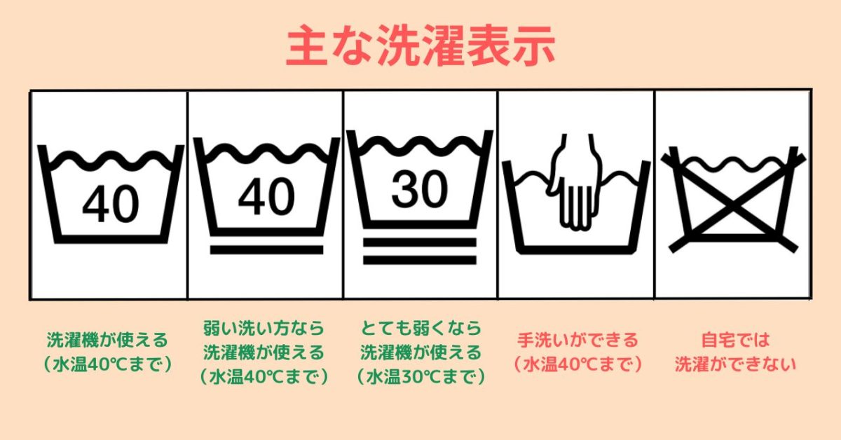寝袋を洗濯する際は、事前に使っている寝袋の洗濯表示をチェックしましょう。洋服と同様に、寝袋にも以下のような洗濯表示のタグがついています。