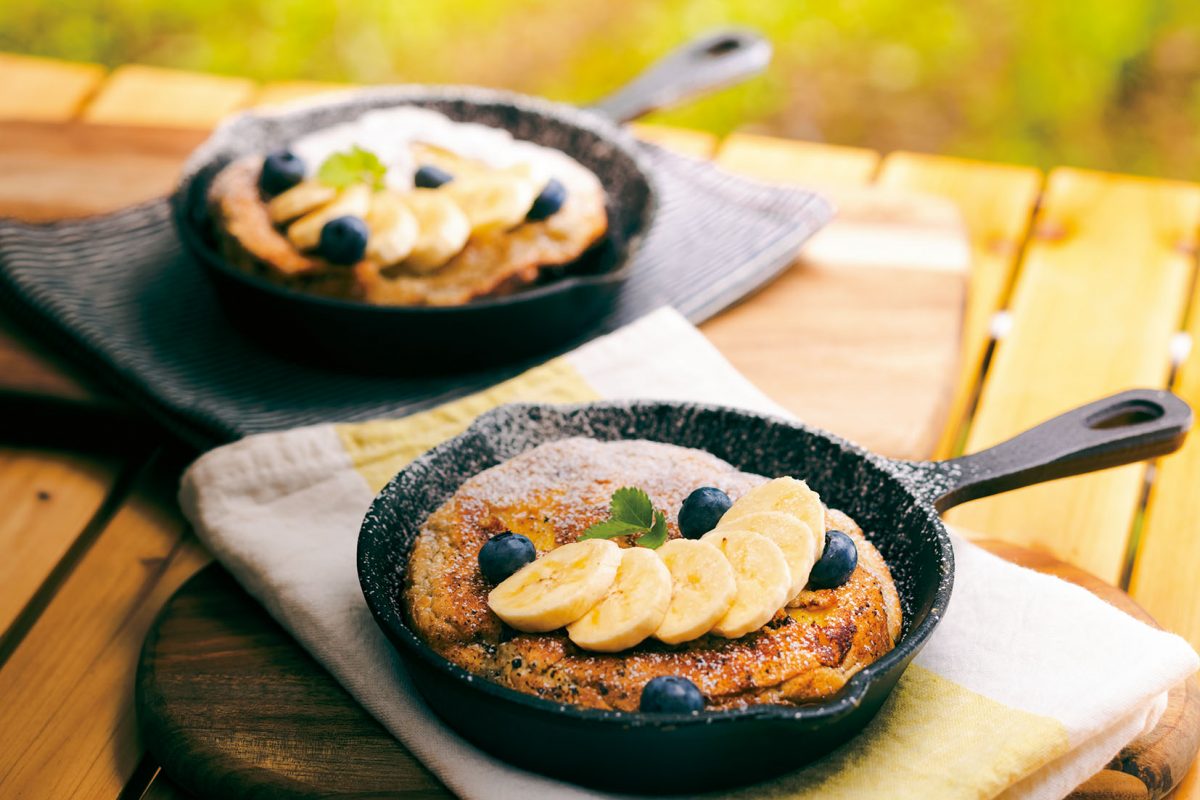 アルミやチタン製のアウトドア調理道具とは、使い方や得意な料理が異なる、鋳鉄製のミニパンが特別付録になったランドネ増刊『ミニパンでキャンプごはんBOOK』が発売中です!オリジナルミニパンを使った「キャンプの朝ごはん、おつまみ、デザート」の3テーマ別に、3組の料理家さんが簡単なのに、見た目が華やかなレシピを紹介してくれる一冊になっています。